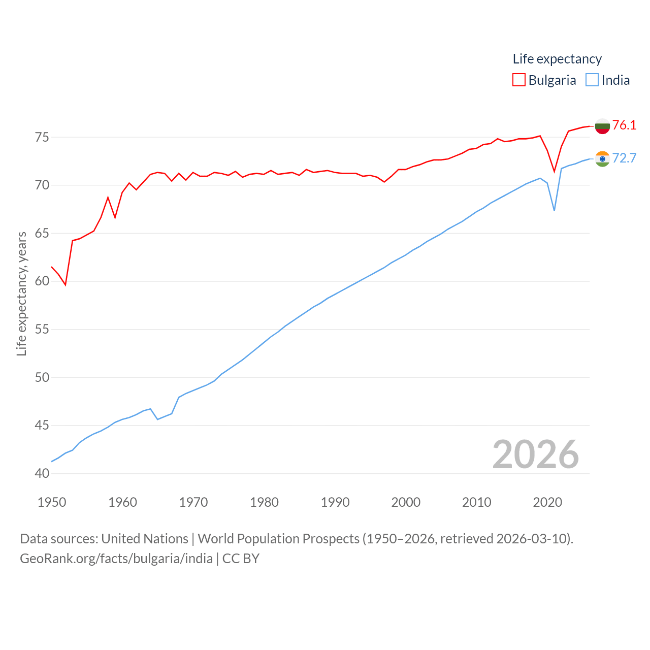 - United Nations | World Population Prospects (1950–2026, retrieved 2026-03-10)