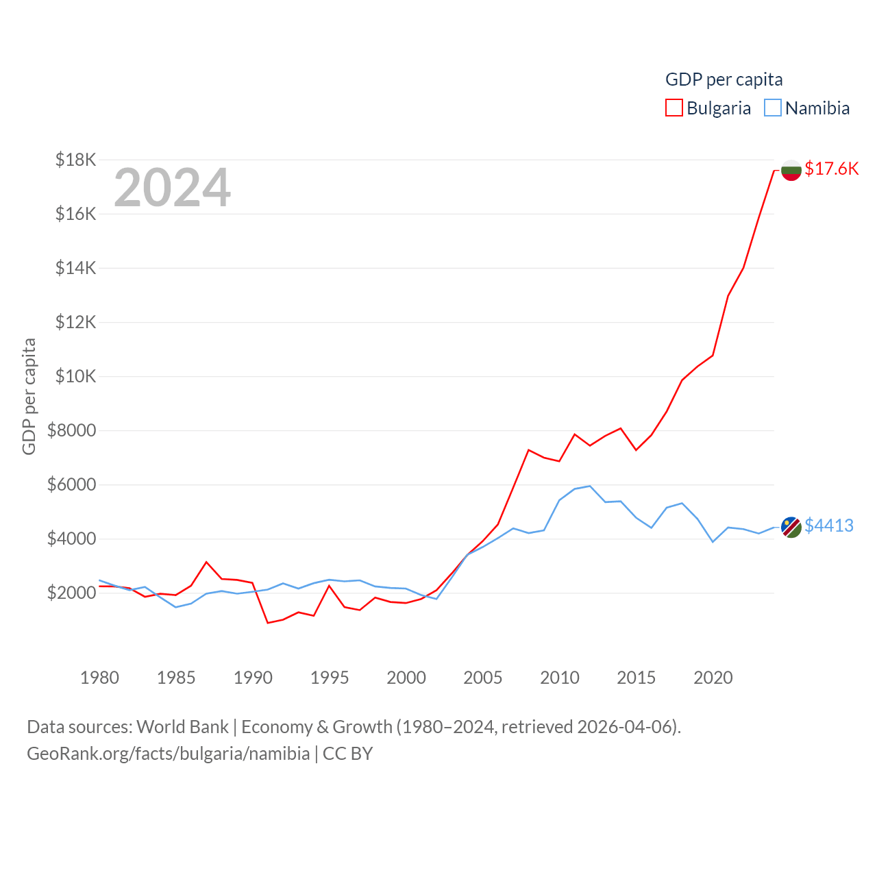 Data sources: World Bank | Economy & Growth (1980–2024, retrieved 2026-04-06).