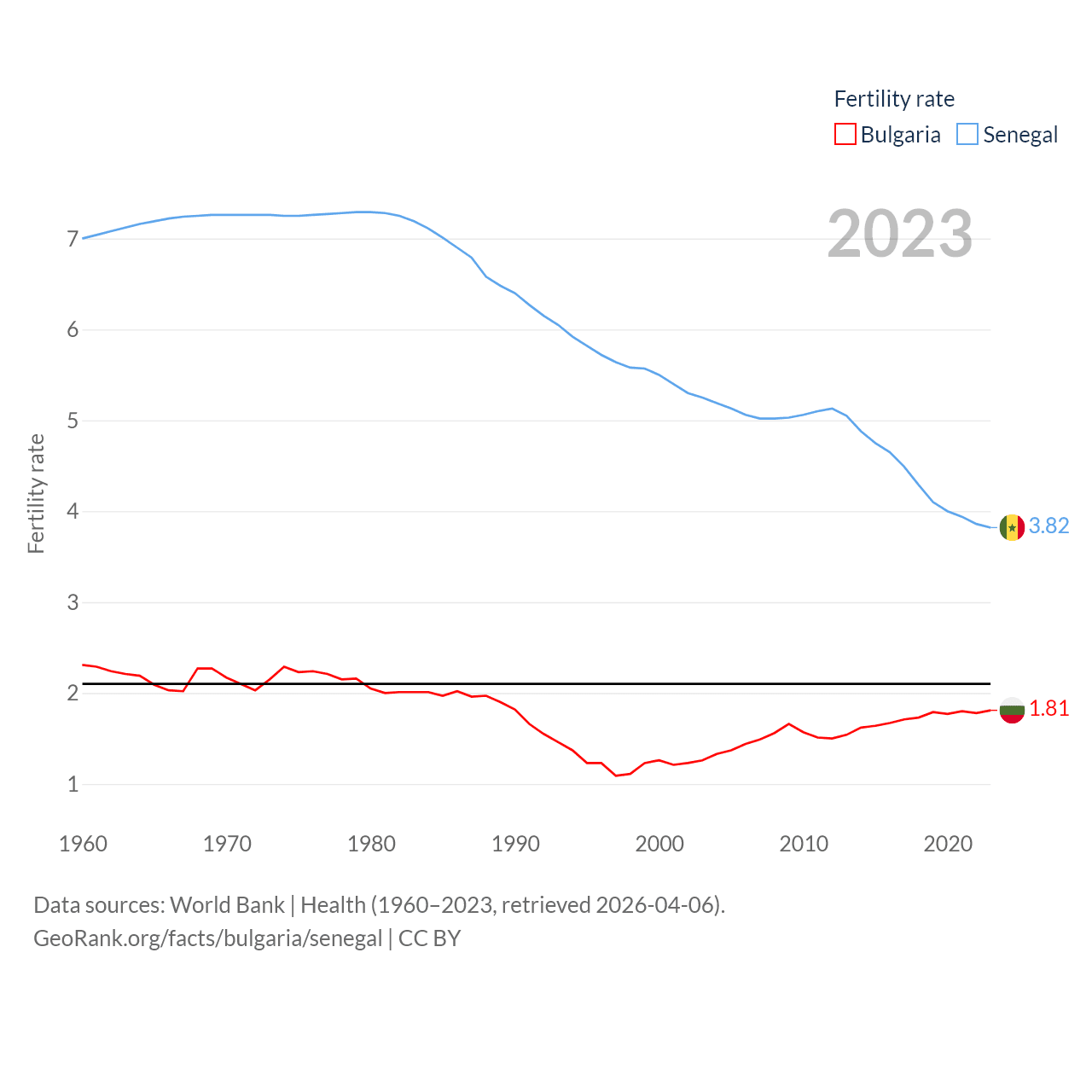 - World Bank | Health (1960–2025, retrieved 2026-04-06)