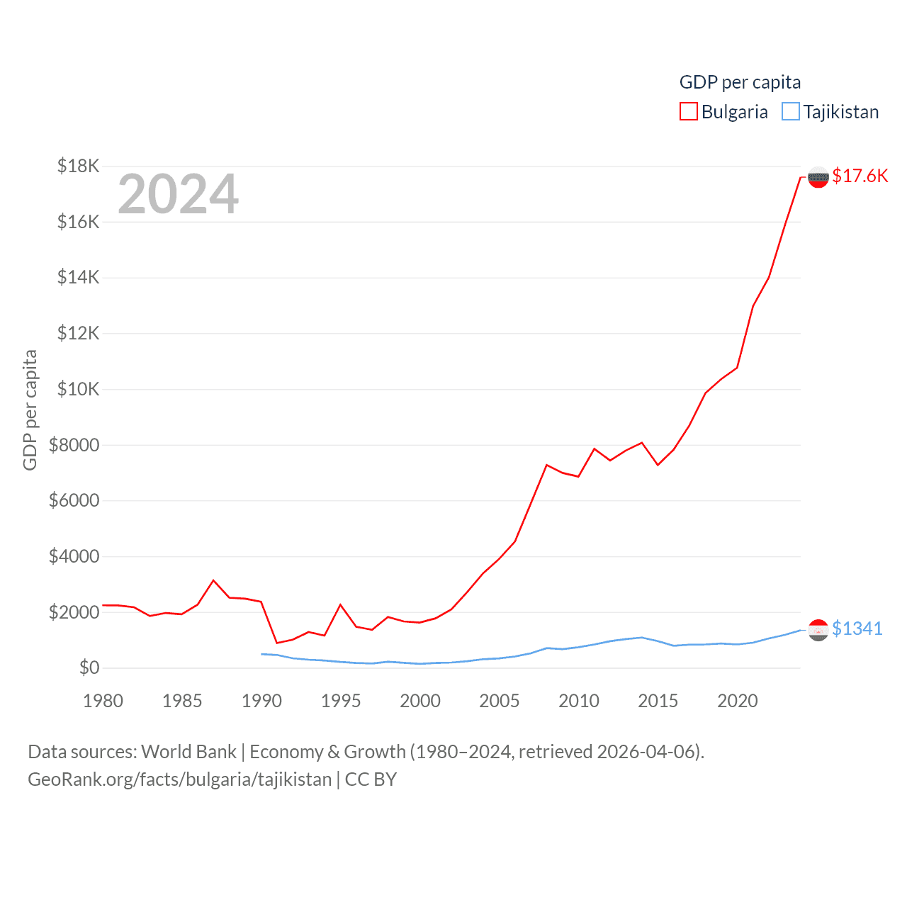 Data sources: World Bank | Economy & Growth (1980–2024, retrieved 2026-04-06).
