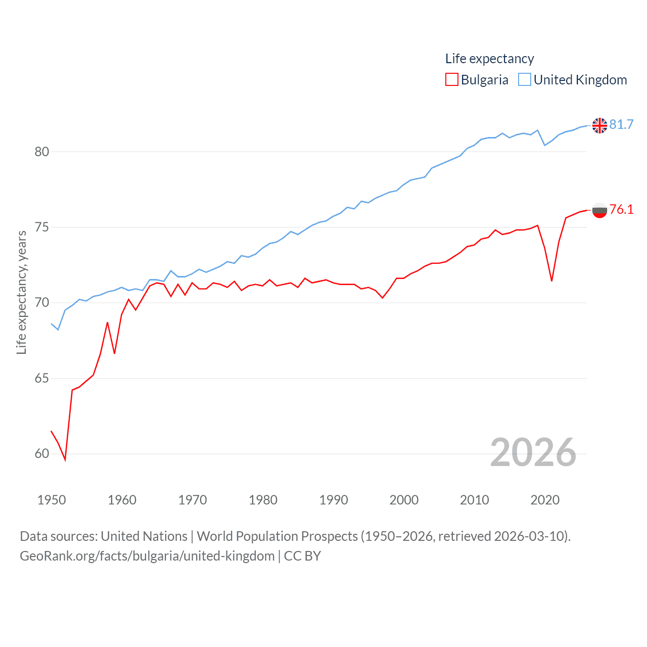 - United Nations | World Population Prospects (1950–2026, retrieved 2026-03-10)