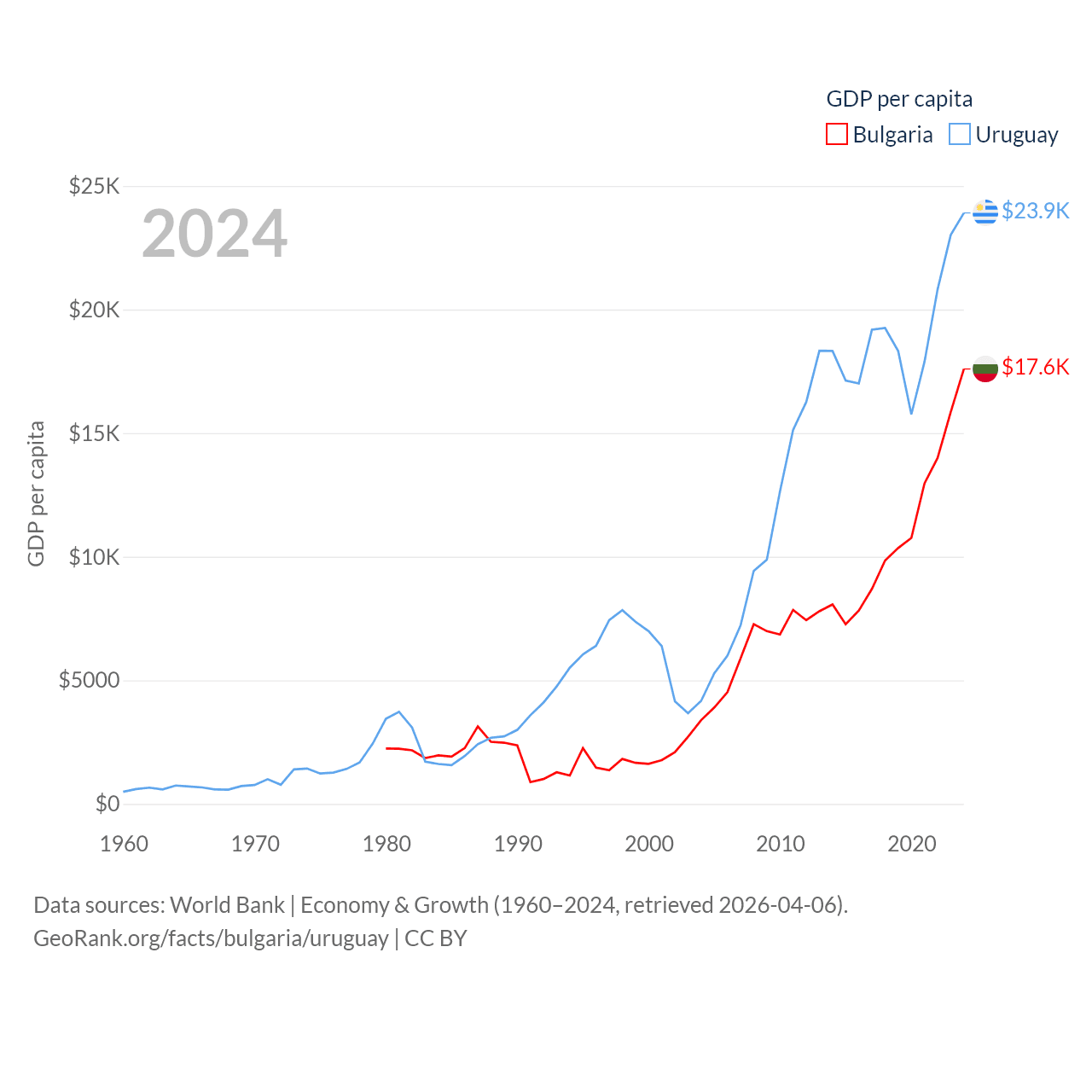 Bulgaria and Uruguay economies compared