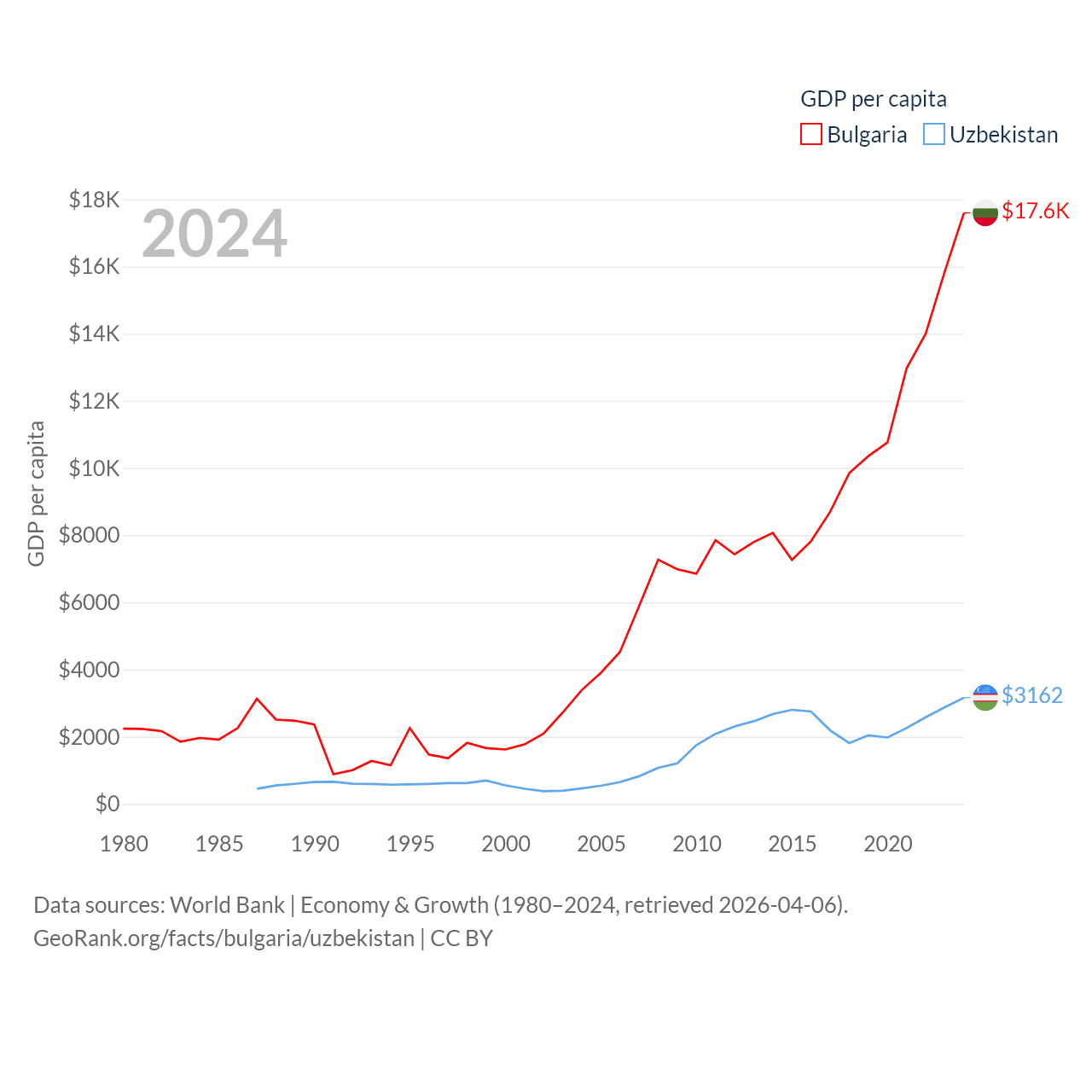 Data sources: World Bank | Economy & Growth (1980–2024, retrieved 2026-04-06).
