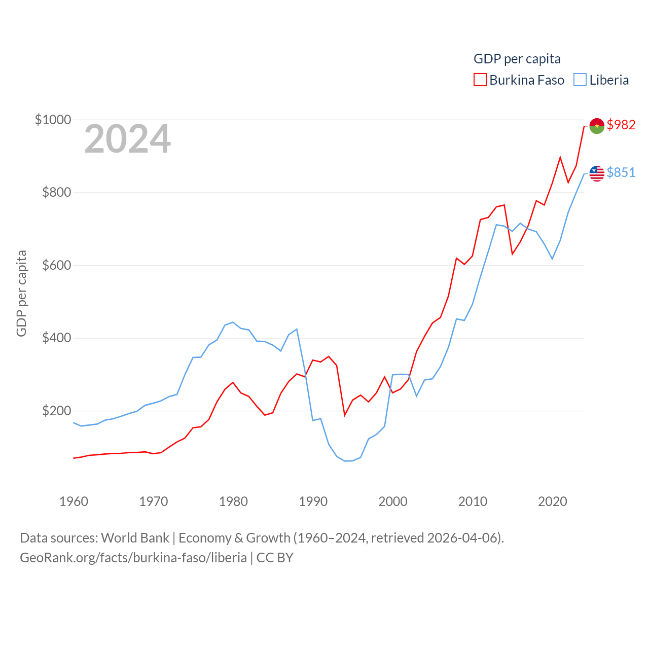 Burkina Faso and Liberia economies compared