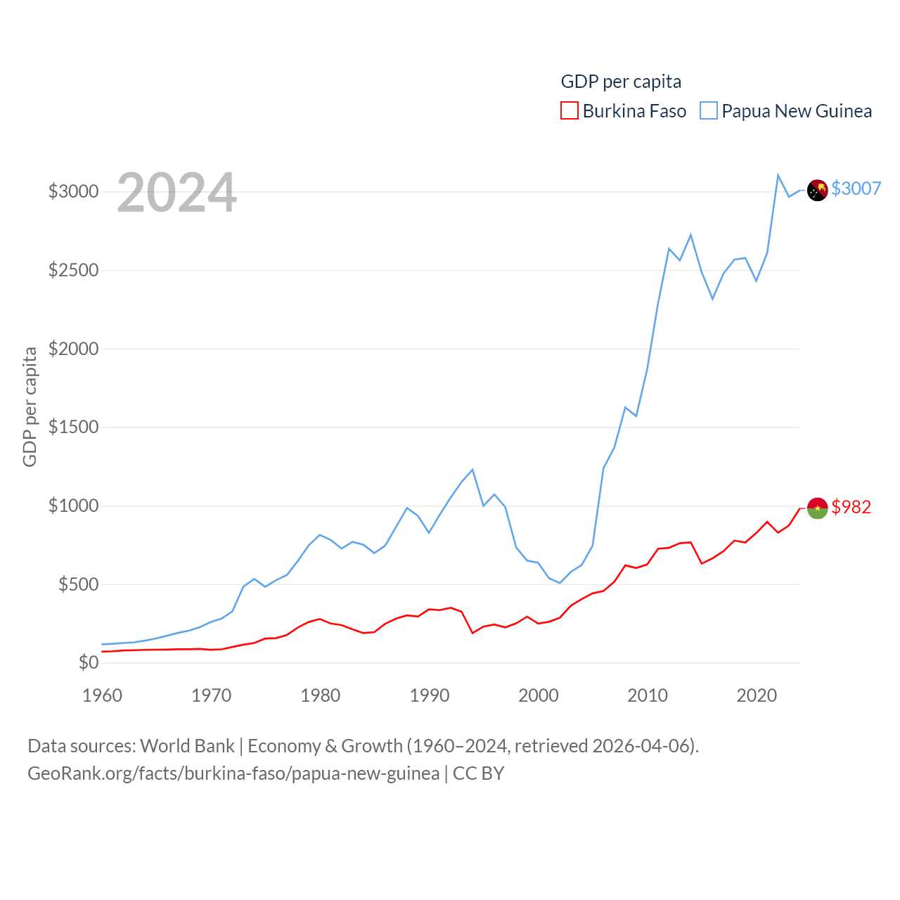 Burkina Faso and Papua New Guinea economies compared