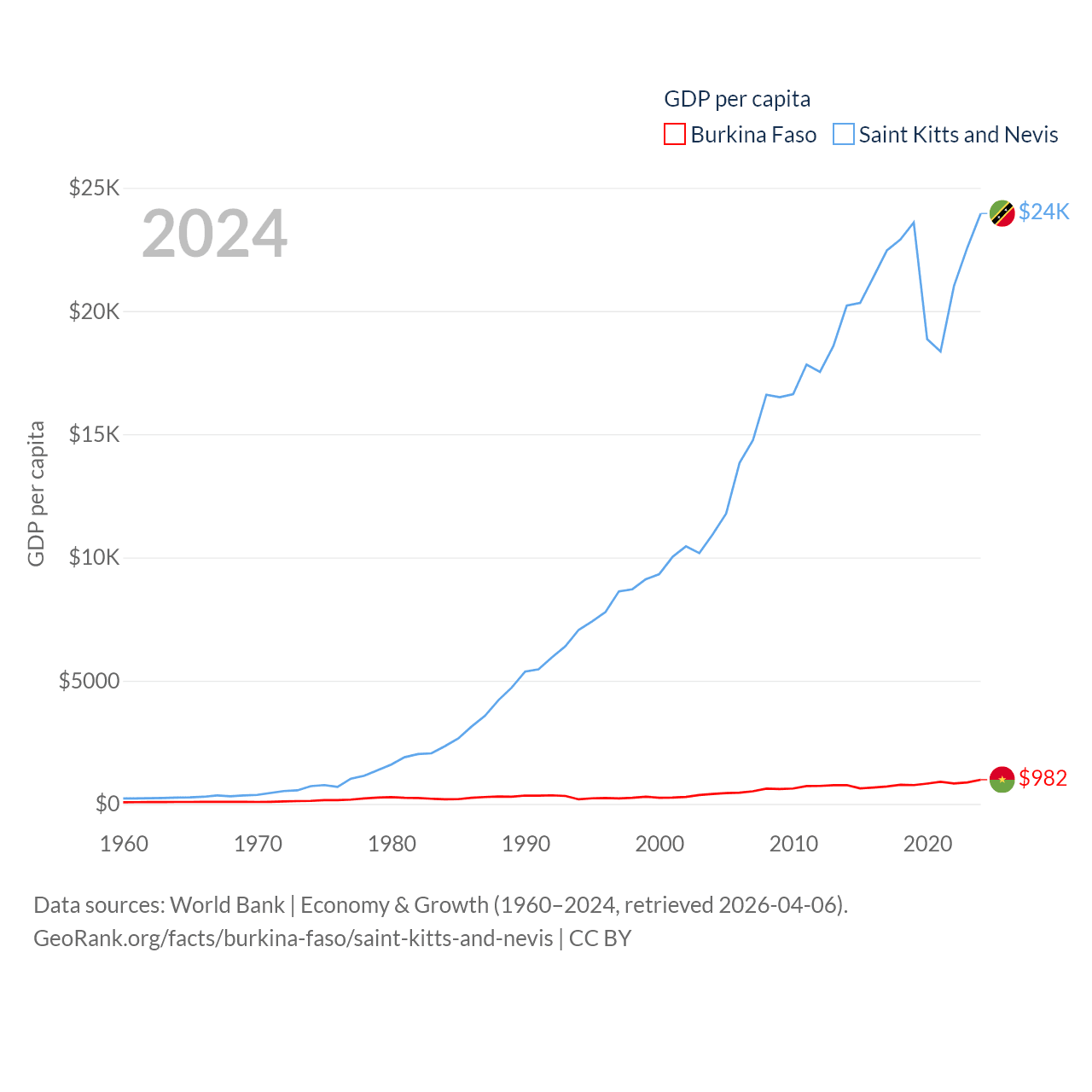 Burkina Faso and Saint Kitts and Nevis economies compared