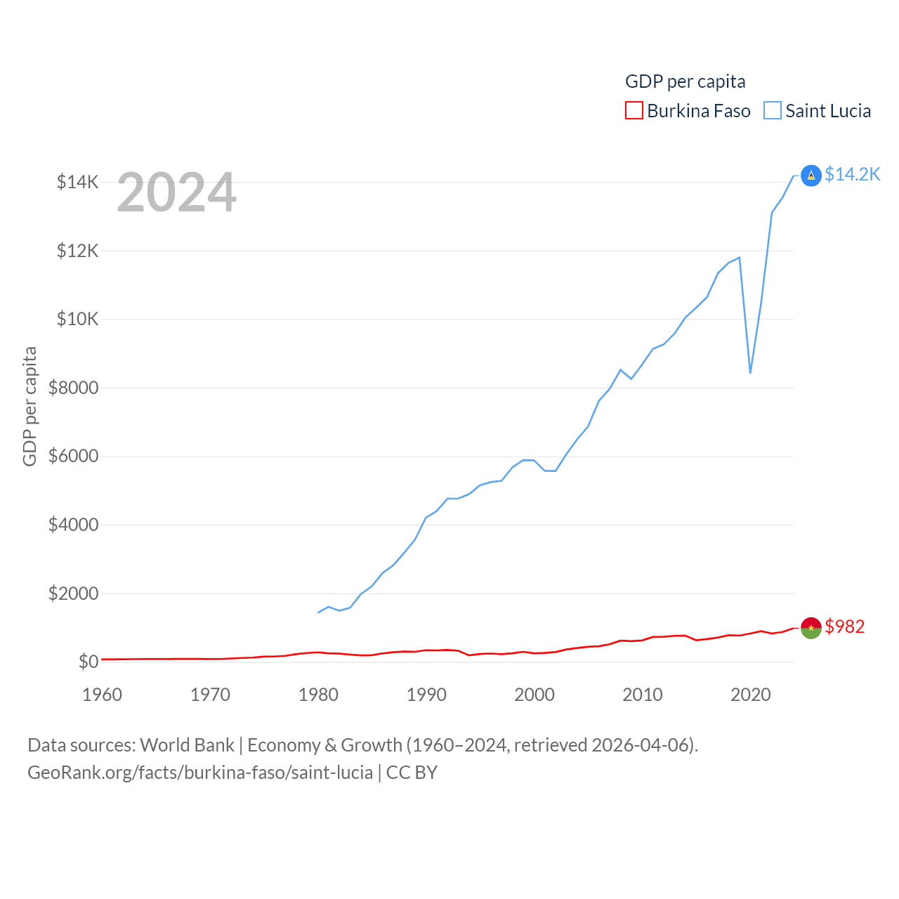 Burkina Faso and Saint Lucia economies compared