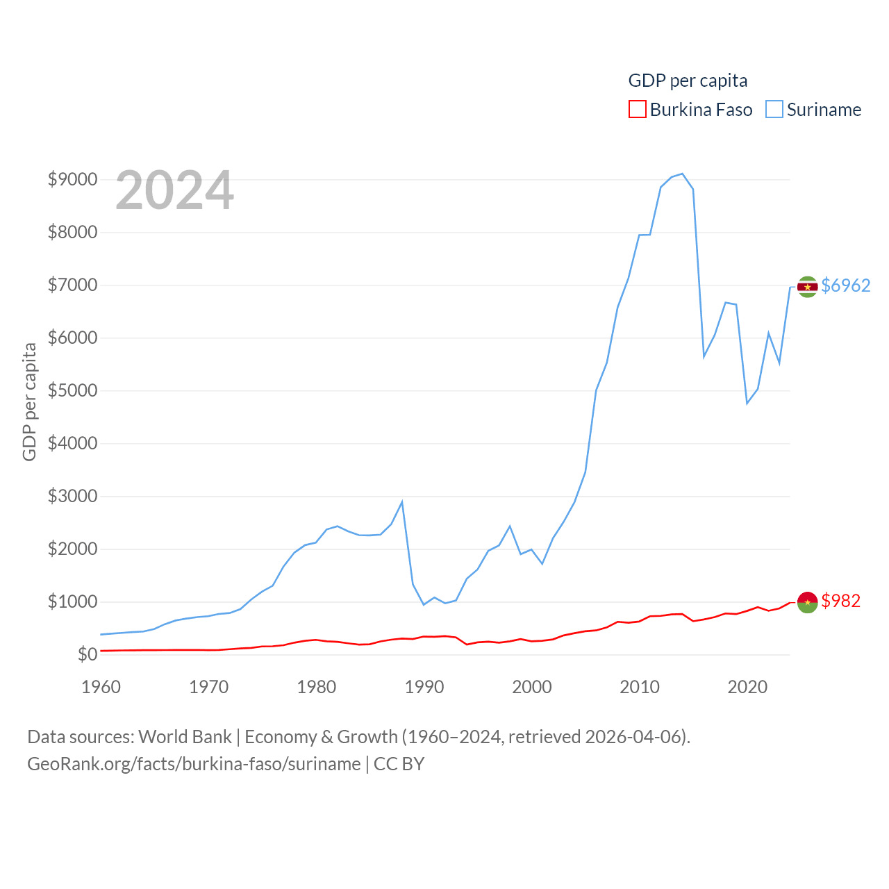 Burkina Faso and Suriname economies compared
