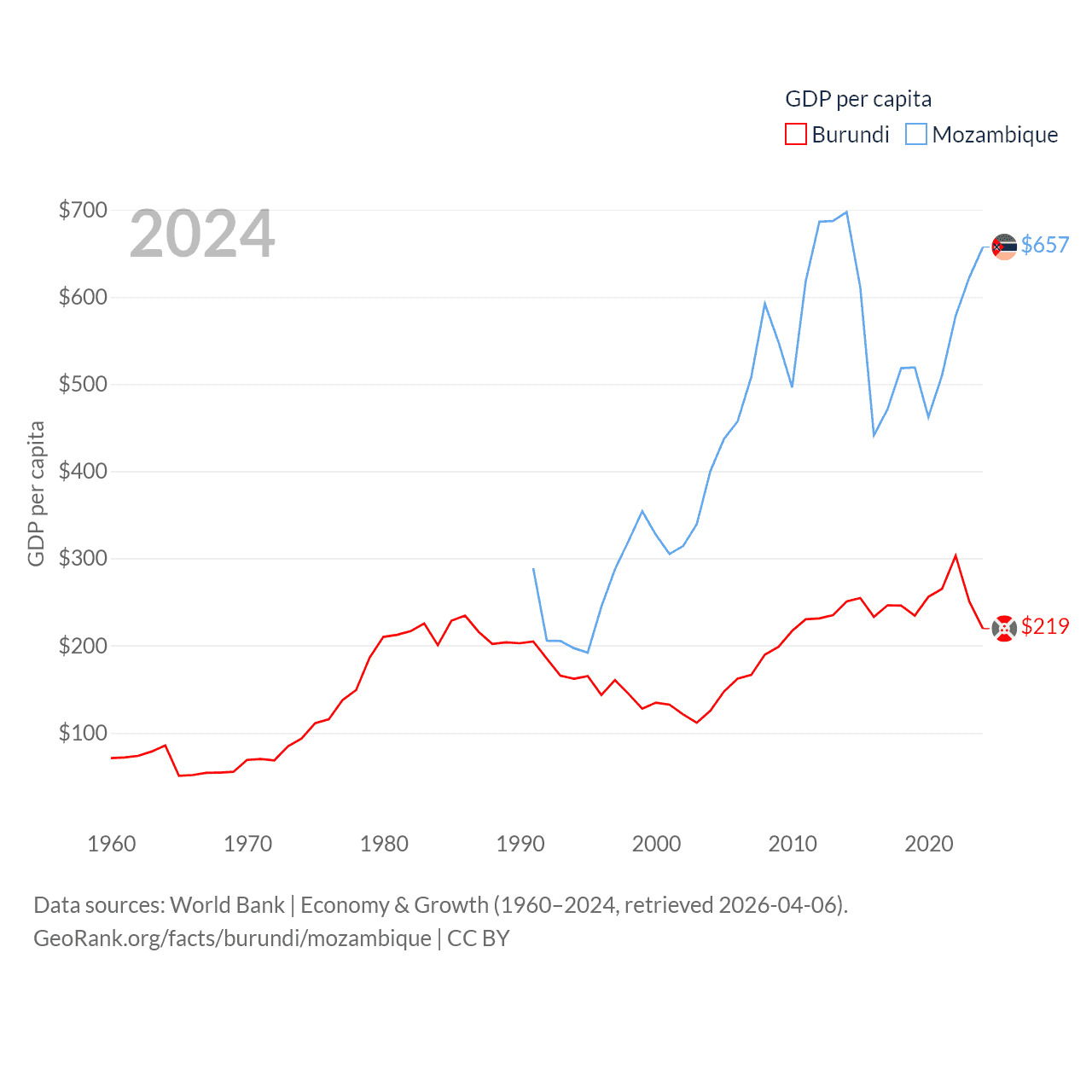 Burundi and Mozambique economies compared