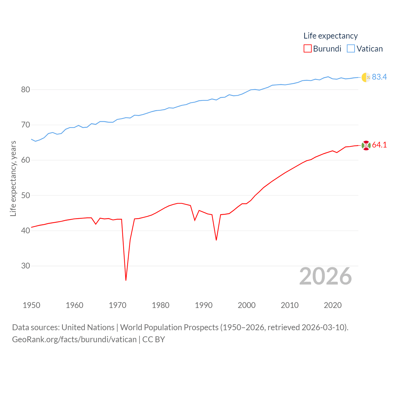 Burundi vs. Vatican life expectancy calculator