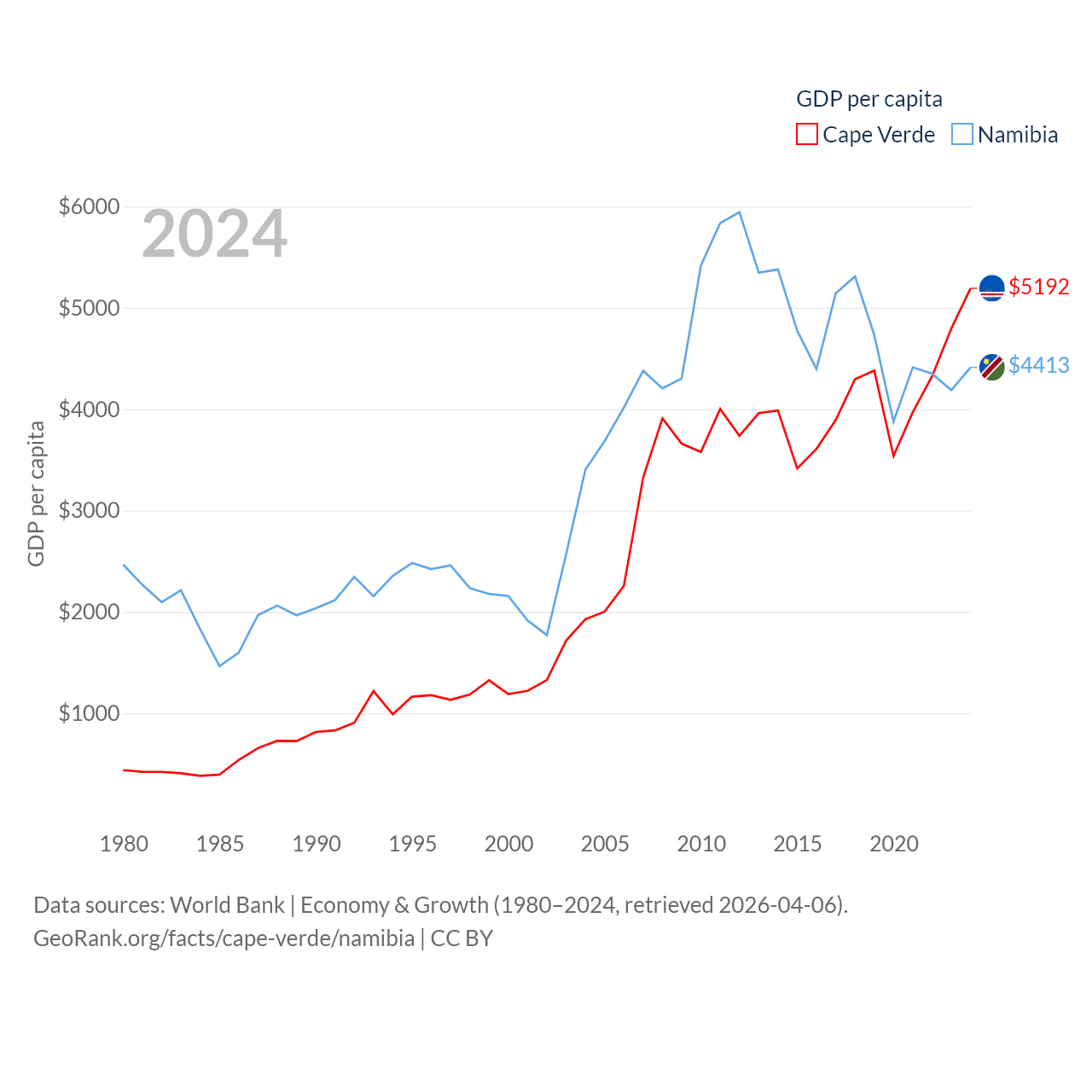 Data sources: World Bank | Economy & Growth (1980–2024, retrieved 2026-04-06).