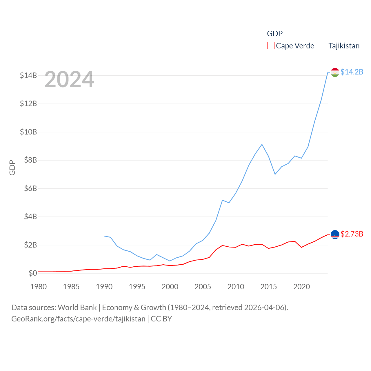 Data sources: World Bank | Economy & Growth (1980–2024, retrieved 2026-04-06).