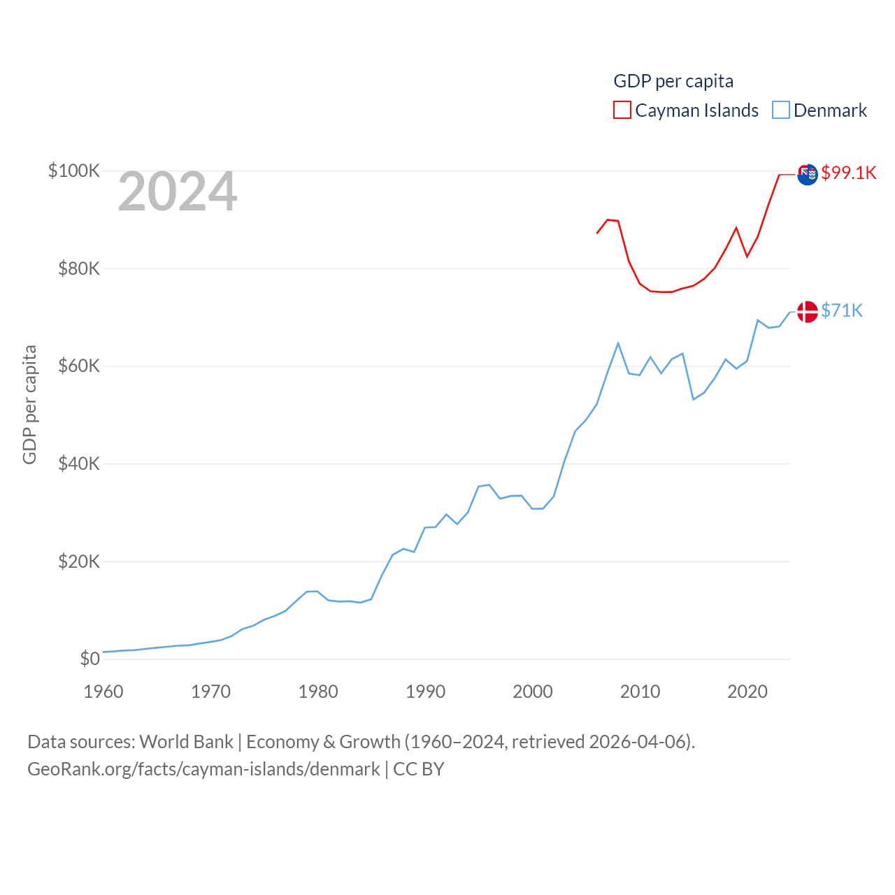Cayman Islands and Denmark economies compared