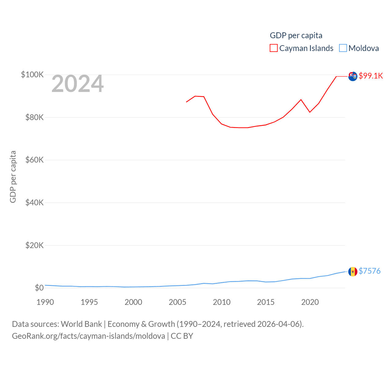 Data sources: World Bank | Economy & Growth (1990–2024, retrieved 2026-04-06).