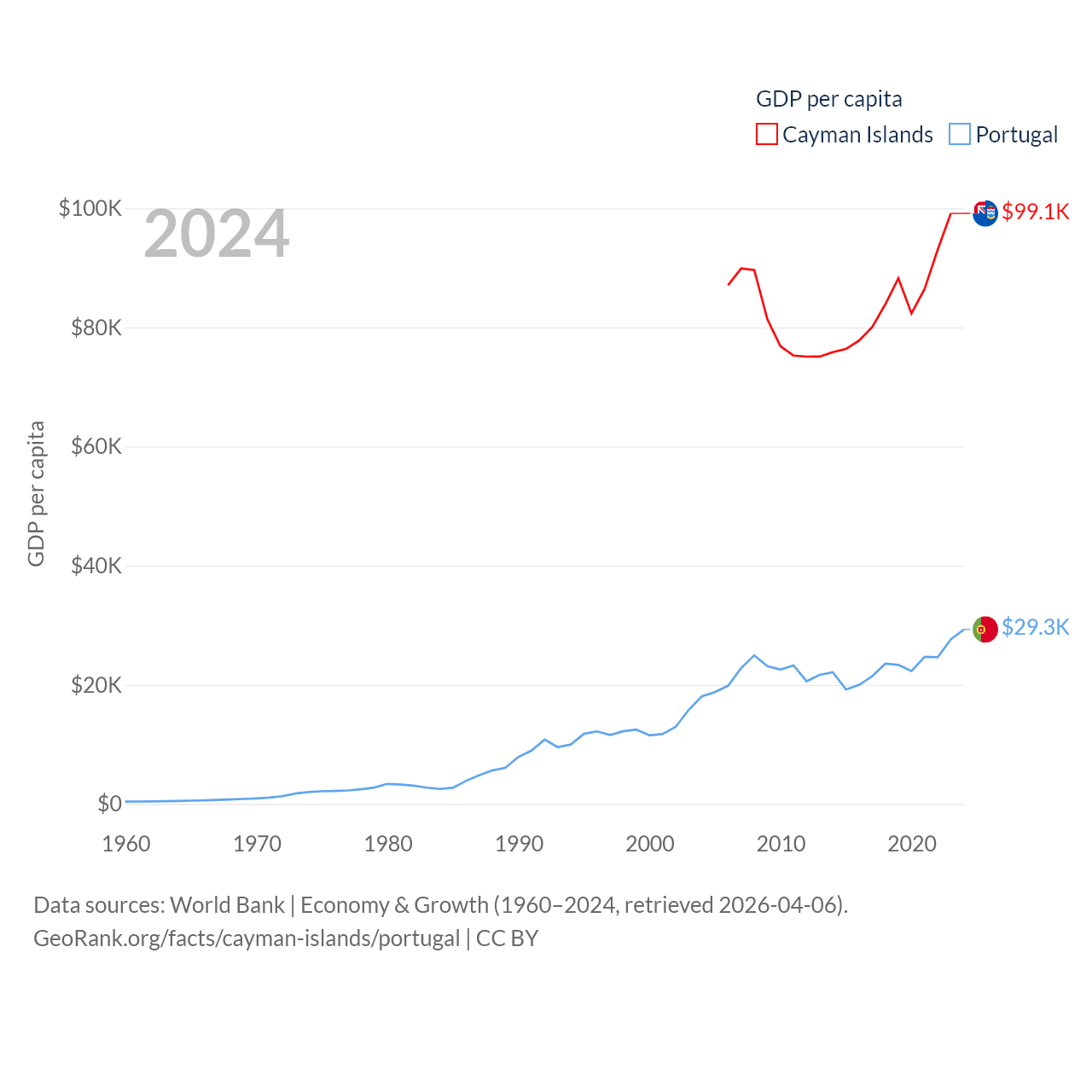 Cayman Islands and Portugal economies compared