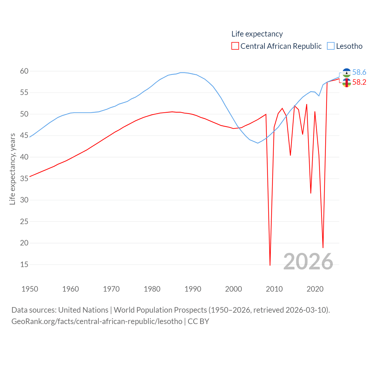 Central African Republic and Lesotho: Comparison Charts