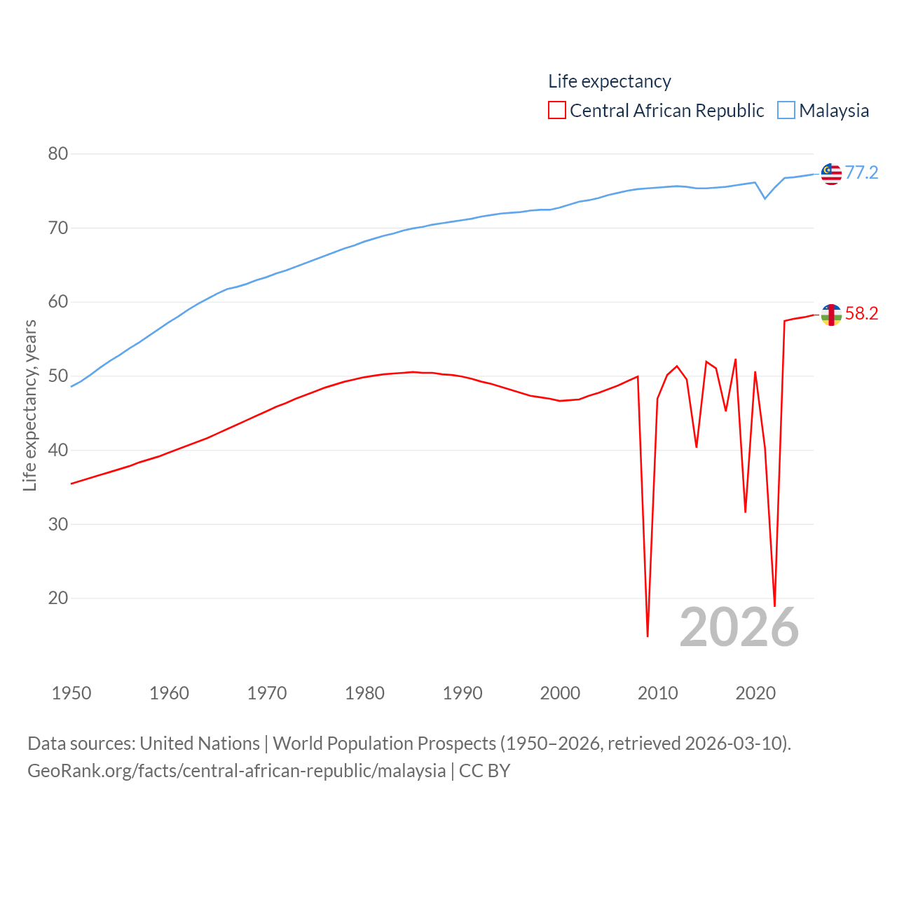 - United Nations | World Population Prospects (1950–2026, retrieved 2026-03-10)