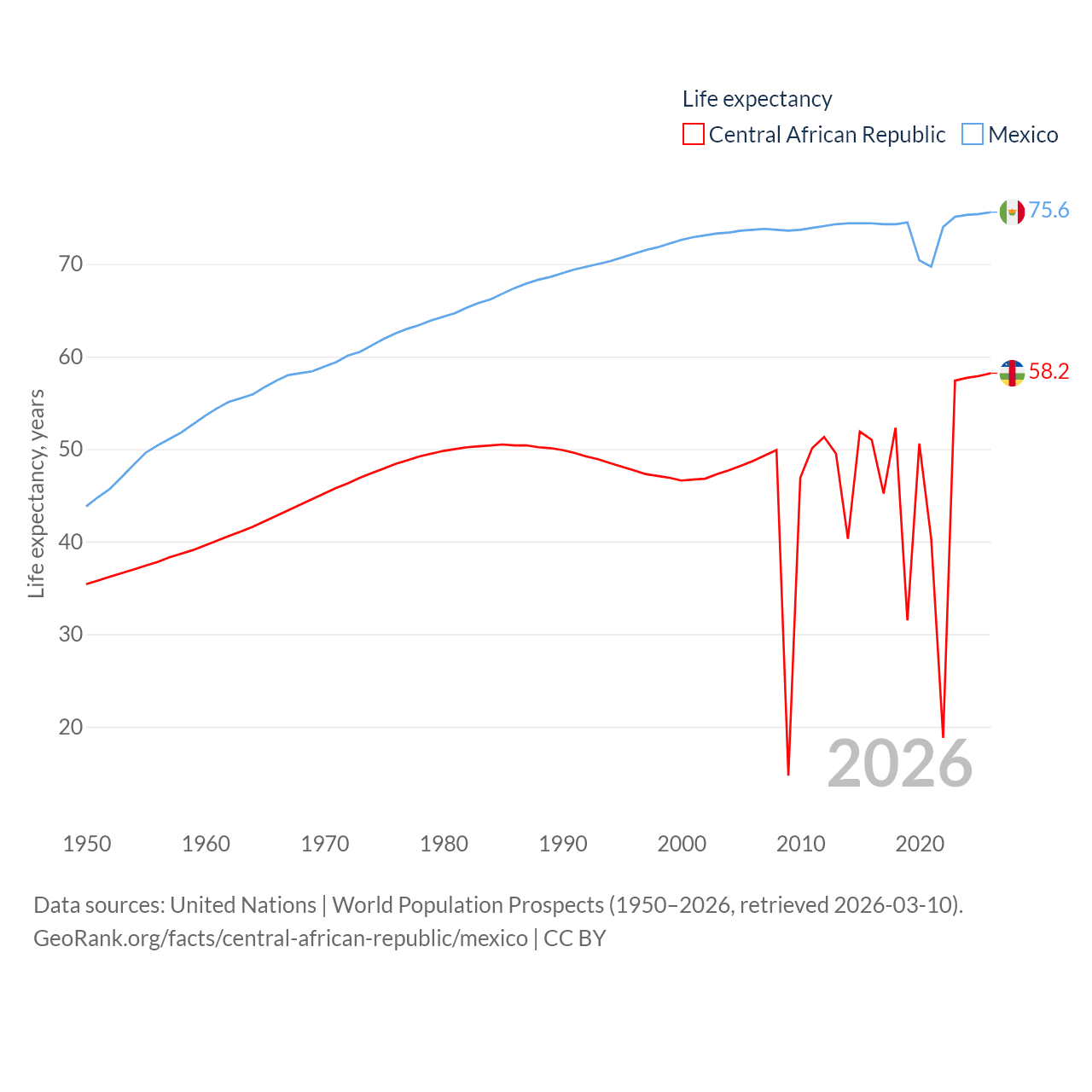 - United Nations | World Population Prospects (1950–2026, retrieved 2026-03-10)