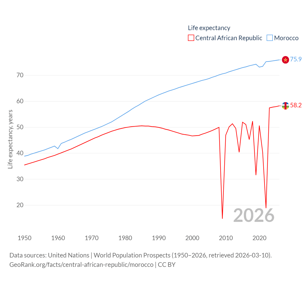 - United Nations | World Population Prospects (1950–2026, retrieved 2026-03-10)