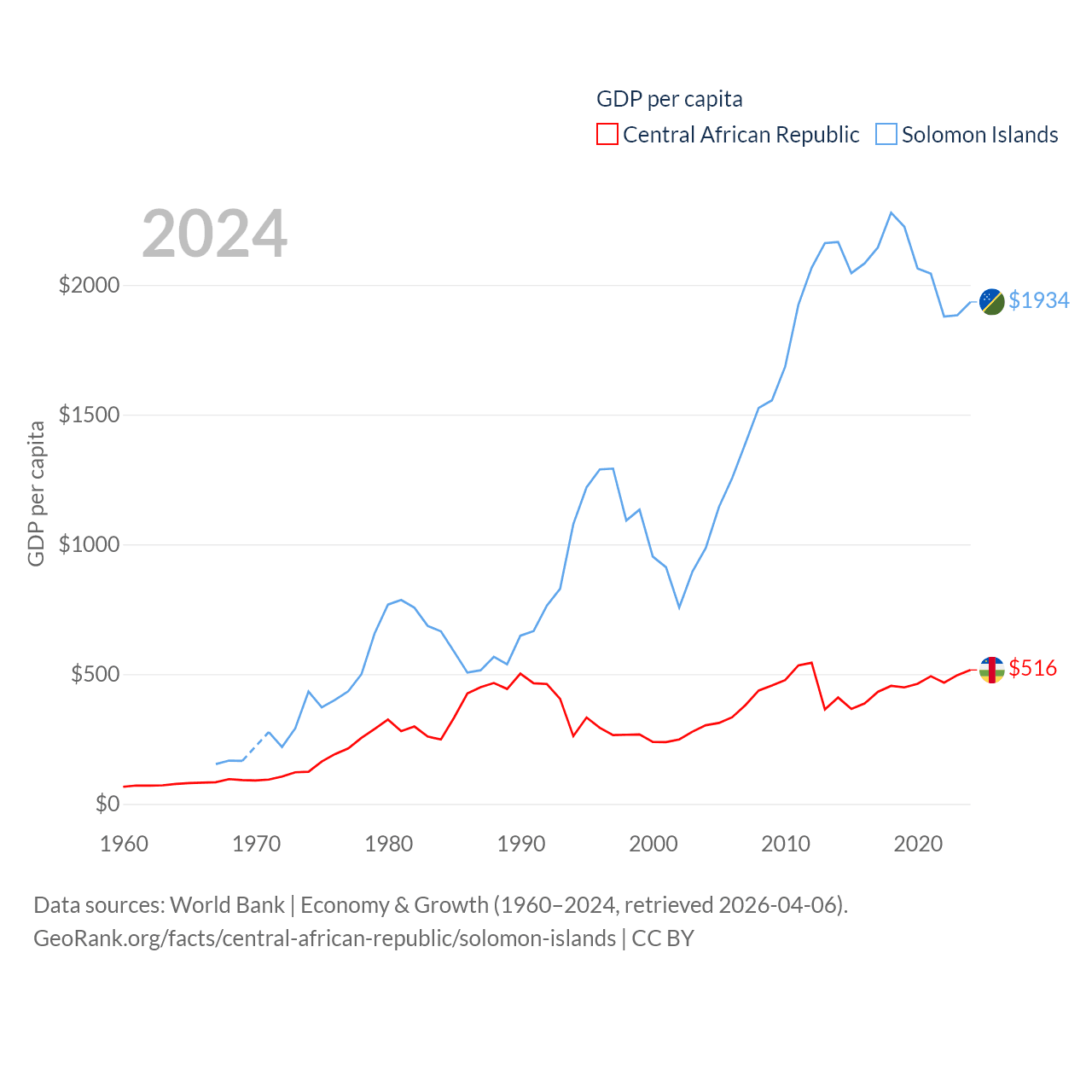 Central African Republic and Solomon Islands economies compared