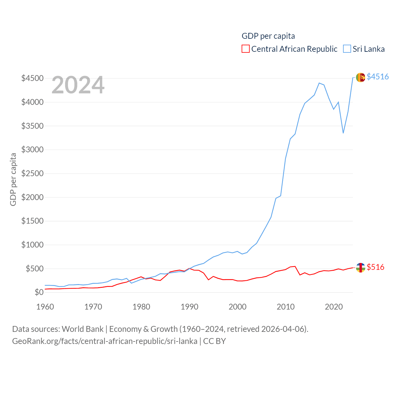 Central African Republic and Sri Lanka economies compared