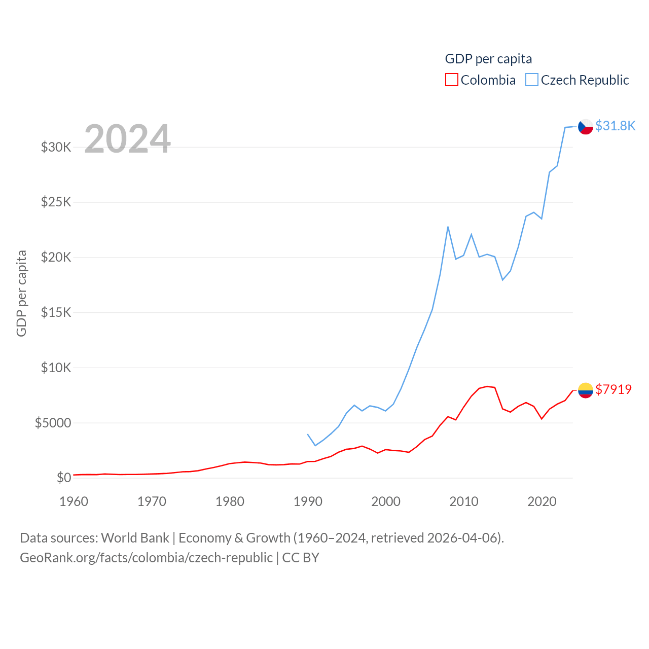 Colombia and Czech Republic economies compared