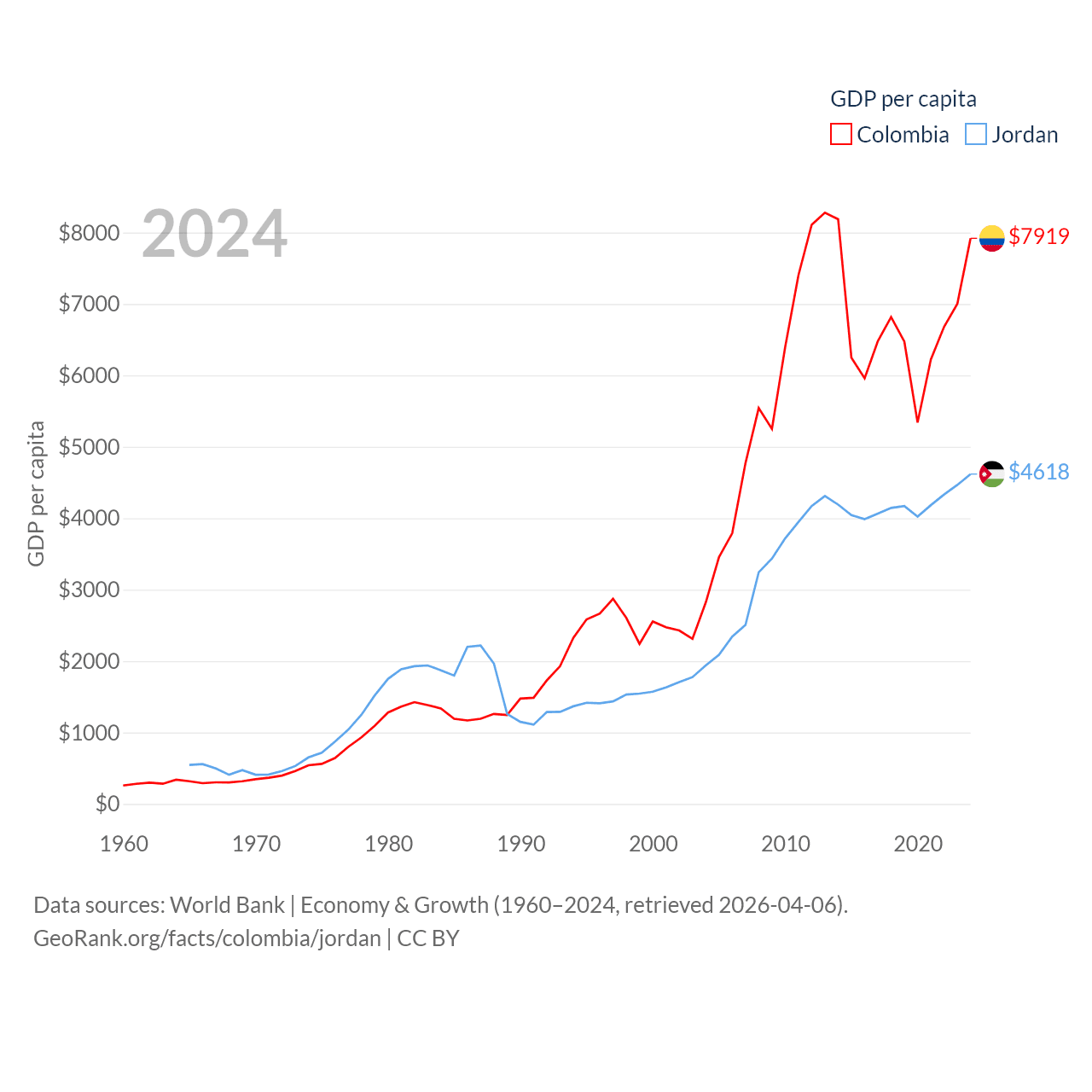Colombia and Jordan economies compared