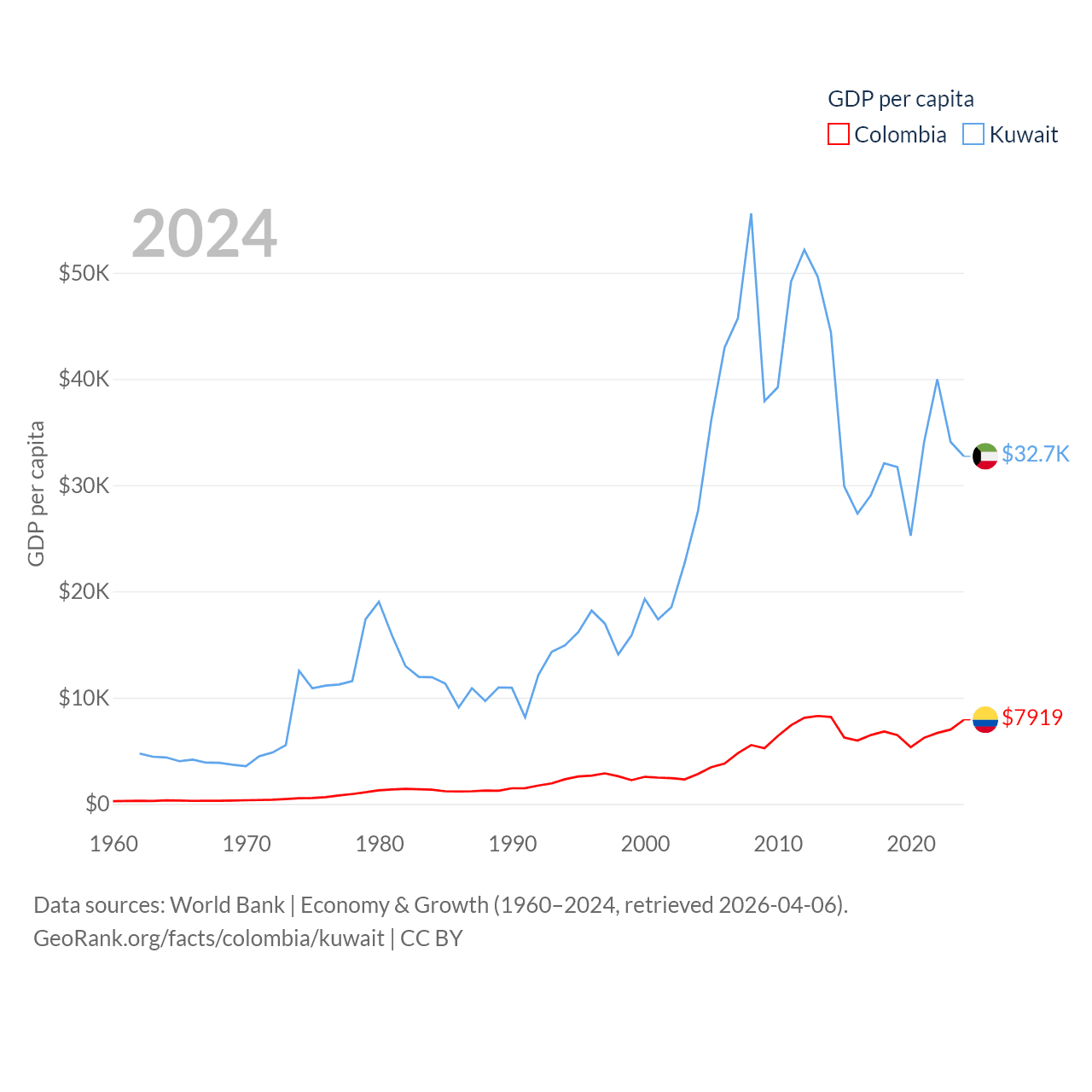 Colombia and Kuwait economies compared