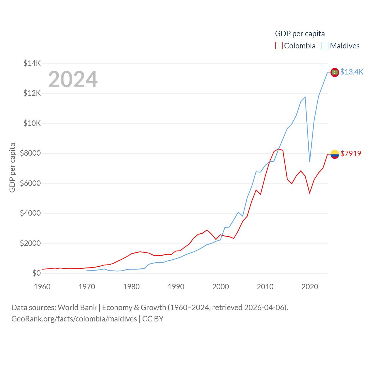 Colombia and Maldives economies compared