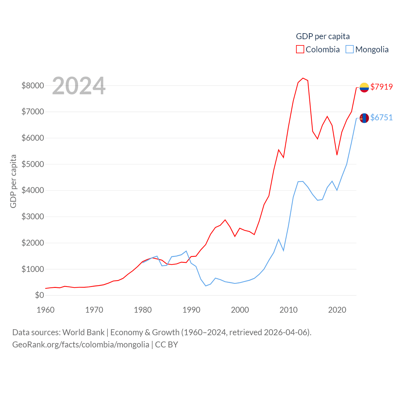 Colombia and Mongolia economies compared