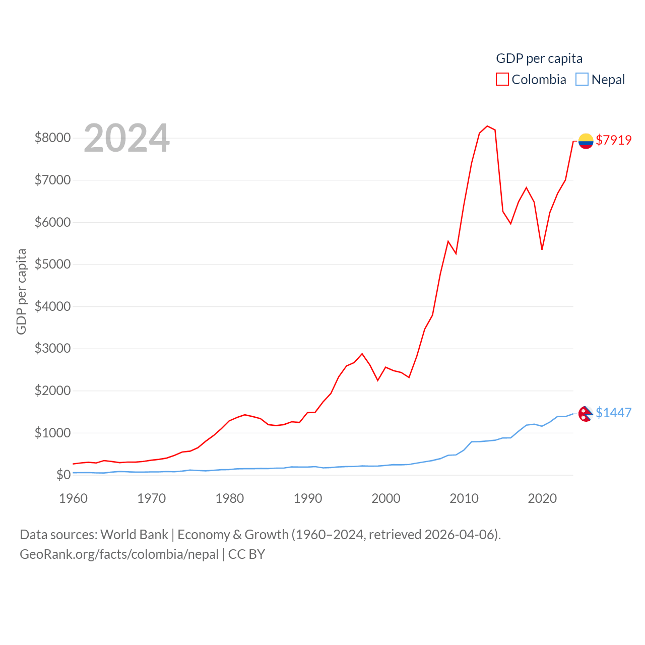 Colombia and Nepal economies compared