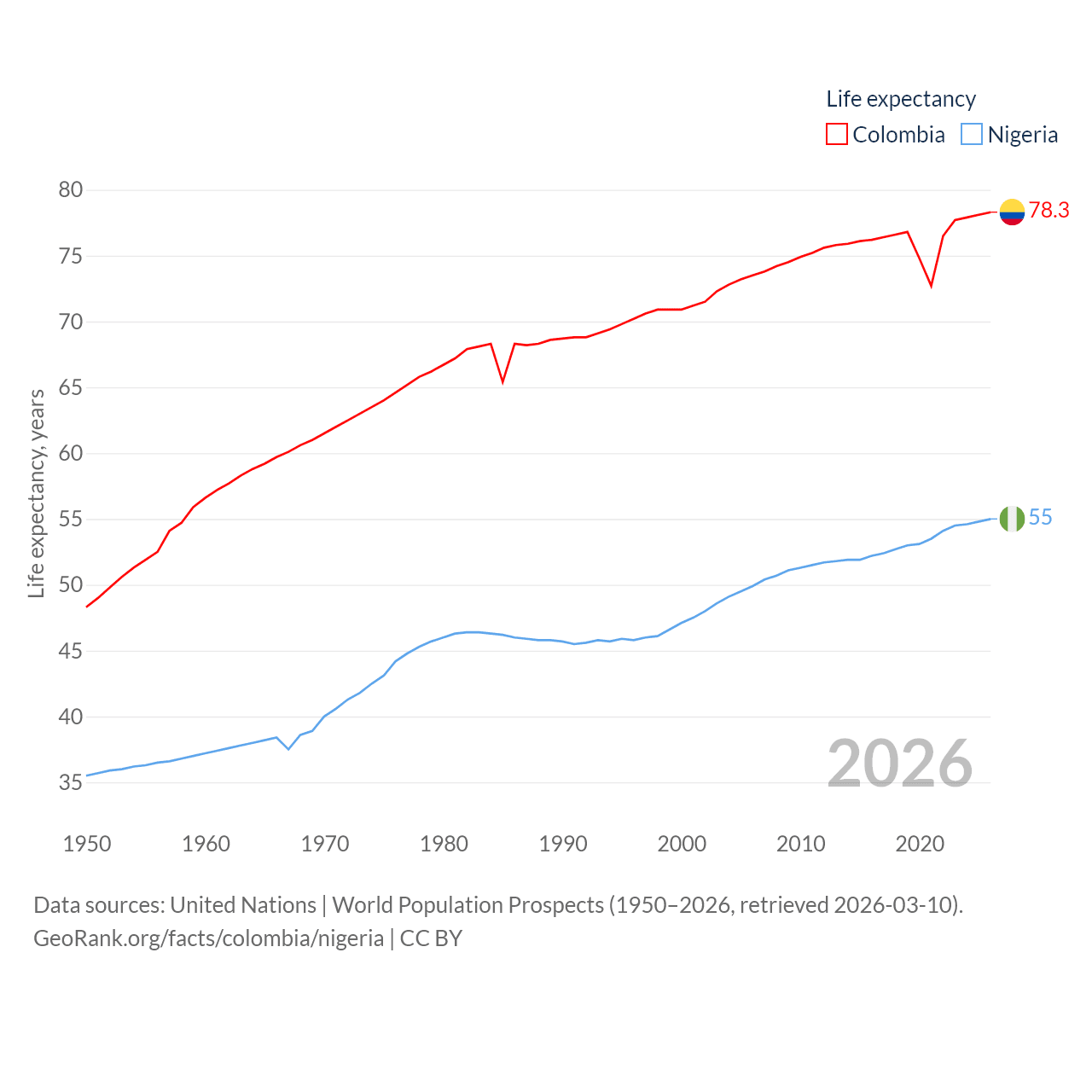 - United Nations | World Population Prospects (1950–2026, retrieved 2026-03-10)