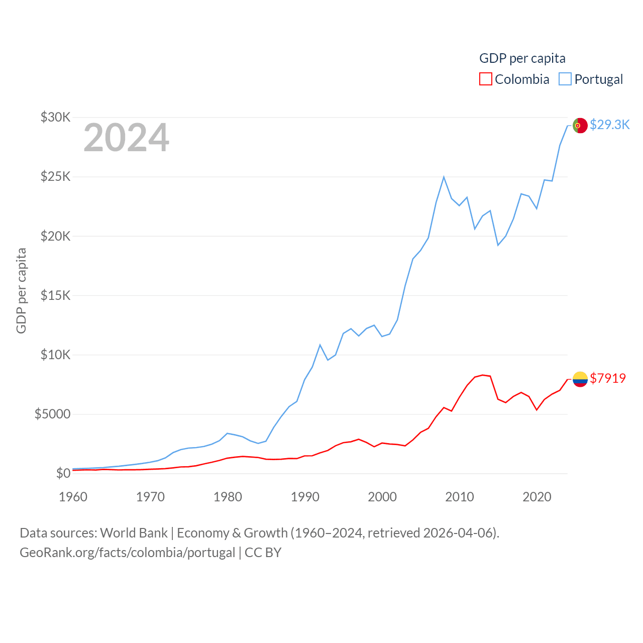 Colombia and Portugal economies compared