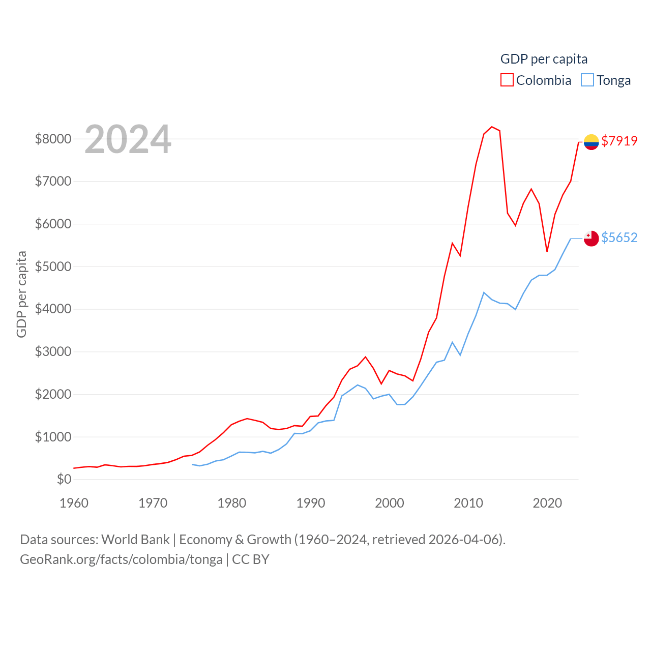 Colombia and Tonga economies compared