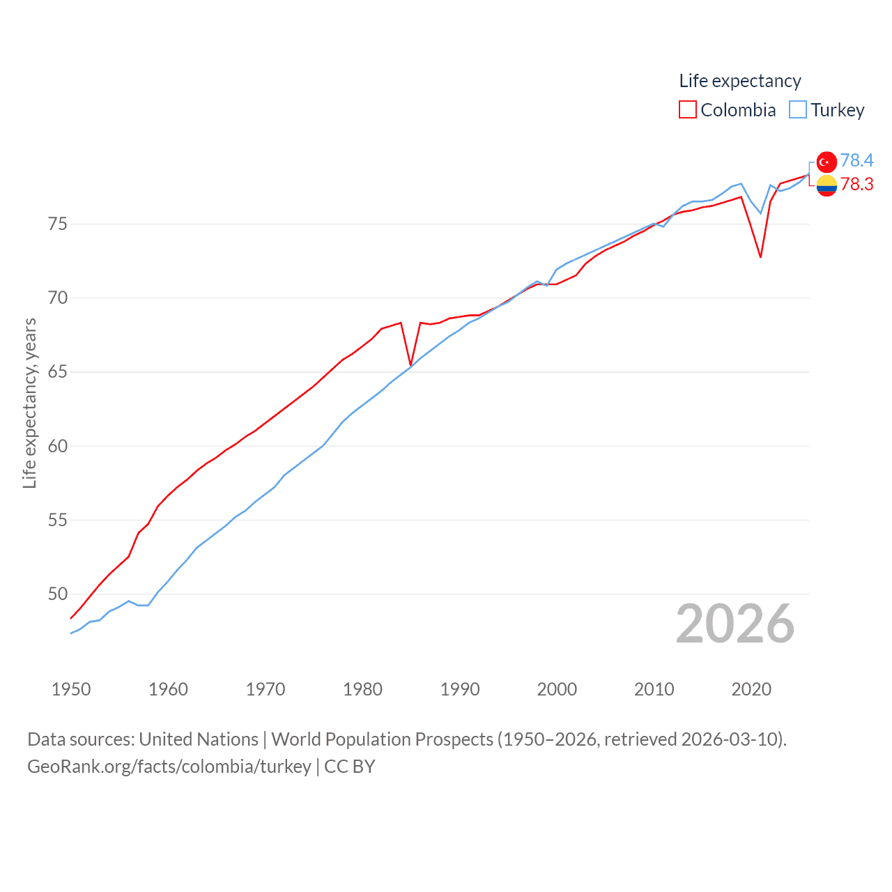 - United Nations | World Population Prospects (1950–2026, retrieved 2026-03-10)