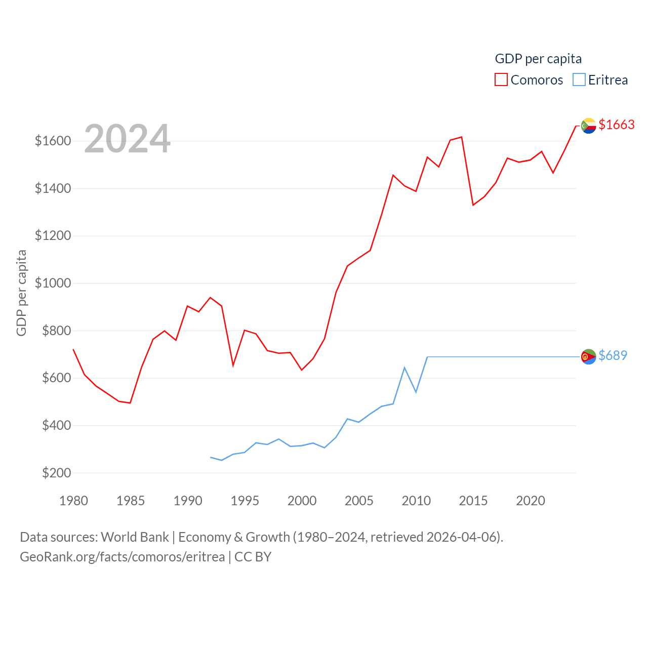 Data sources: World Bank | Economy & Growth (1980–2024, retrieved 2026-04-06).
