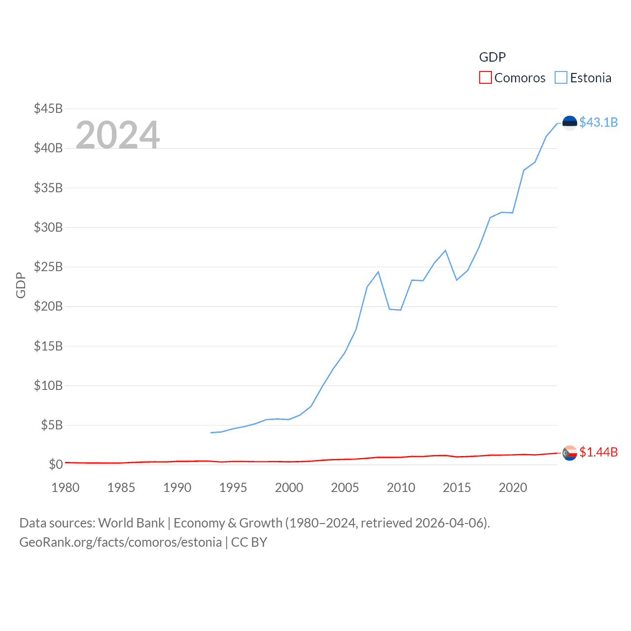 Data sources: World Bank | Economy & Growth (1980–2024, retrieved 2026-04-06).