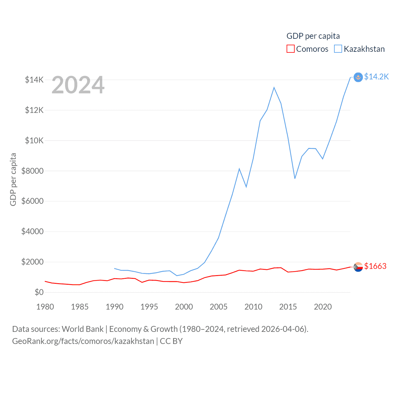 Data sources: World Bank | Economy & Growth (1980–2024, retrieved 2026-04-06).