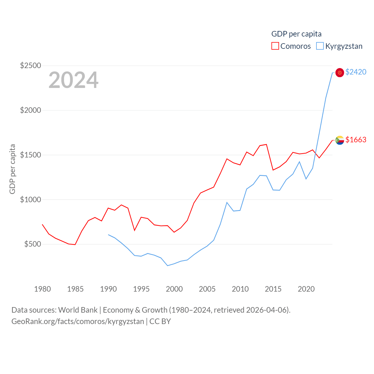 Data sources: World Bank | Economy & Growth (1980–2024, retrieved 2026-04-06).
