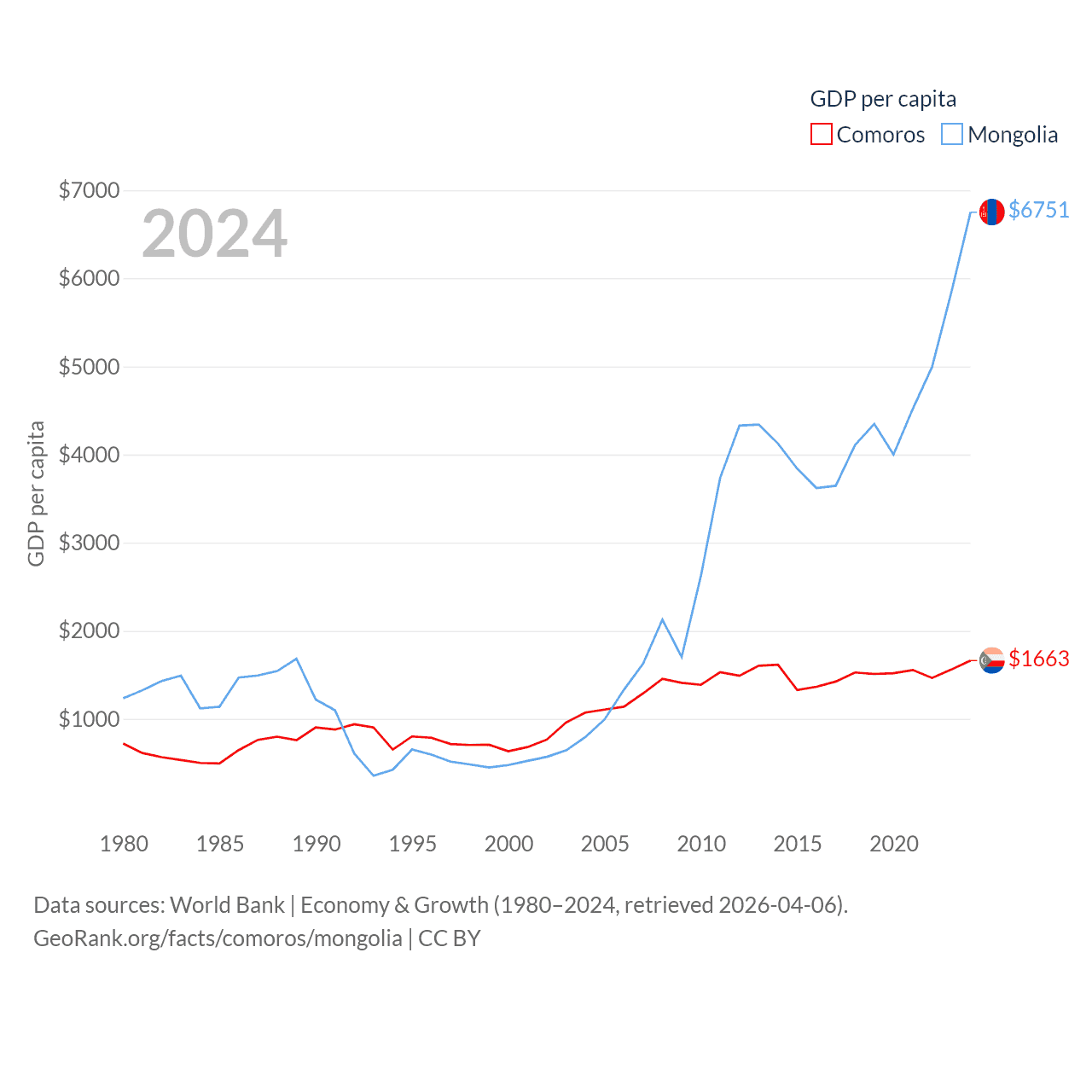 Data sources: World Bank | Economy & Growth (1980–2024, retrieved 2026-04-06).