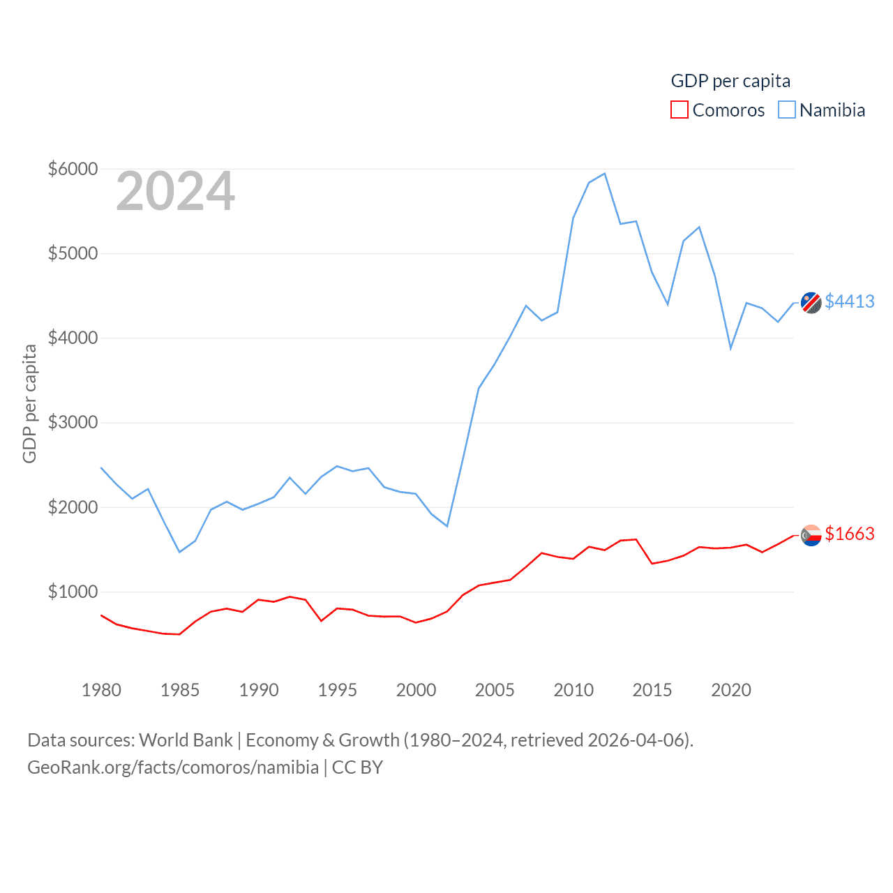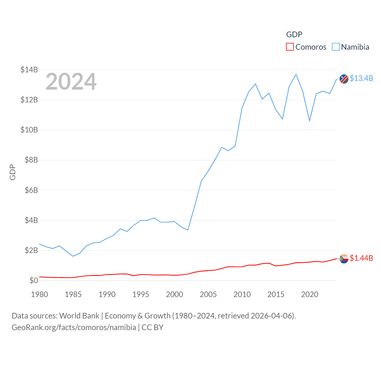Data sources: World Bank | Economy & Growth (1980–2024, retrieved 2026-04-06).