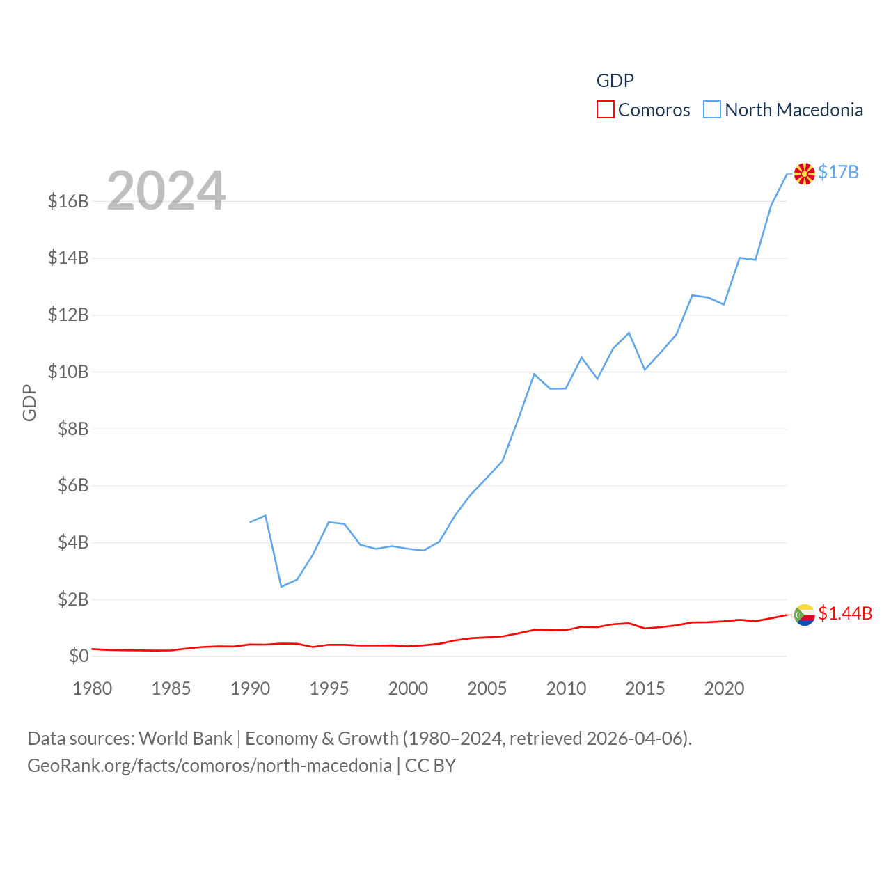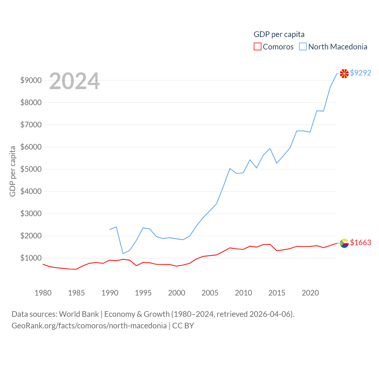 Data sources: World Bank | Economy & Growth (1980–2024, retrieved 2026-04-06).