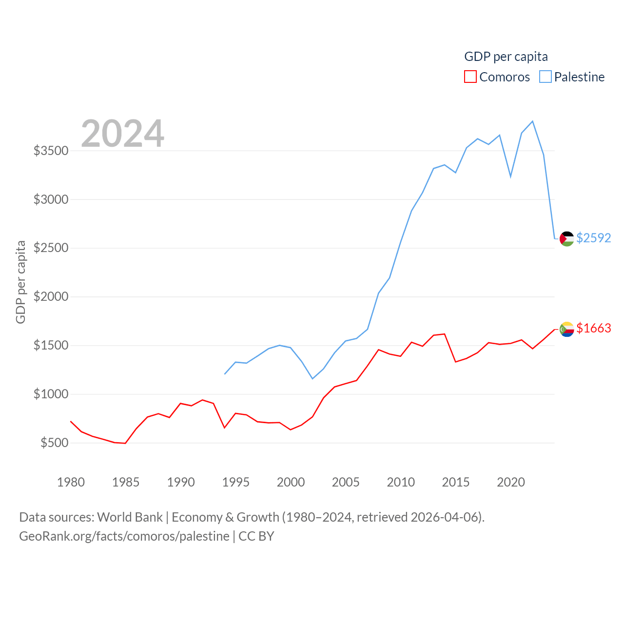 Data sources: World Bank | Economy & Growth (1980–2024, retrieved 2026-04-06).