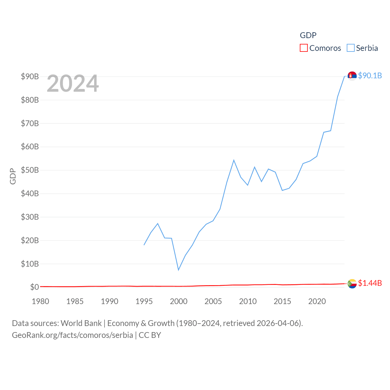 Data sources: World Bank | Economy & Growth (1980–2024, retrieved 2026-04-06).