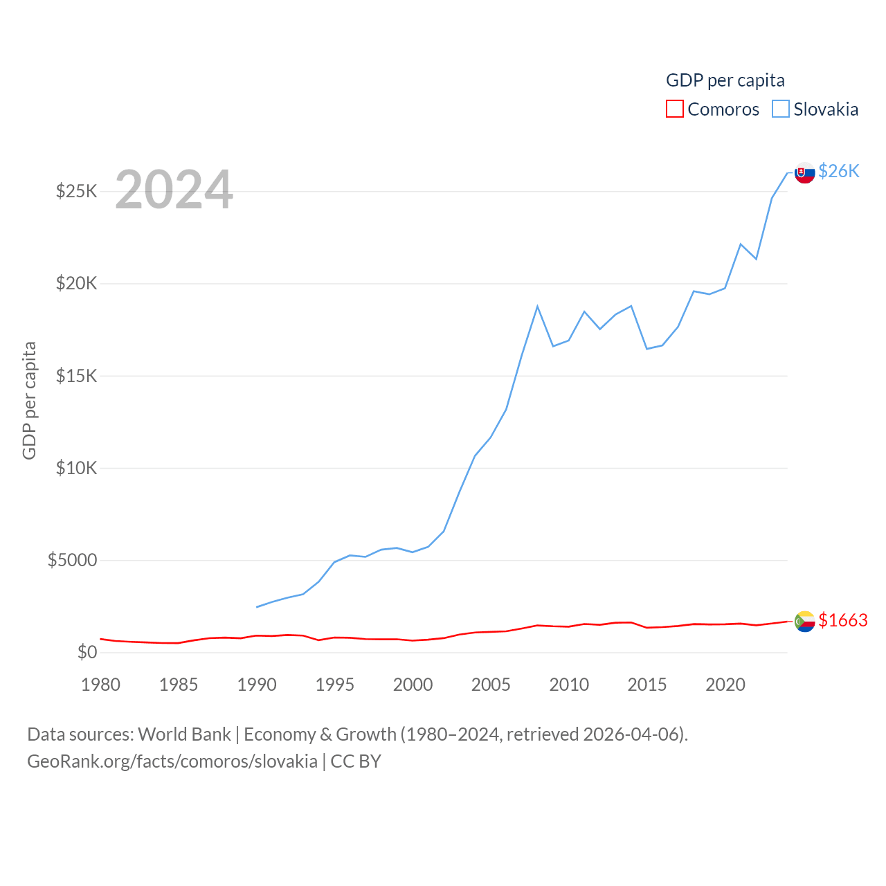 Data sources: World Bank | Economy & Growth (1980–2024, retrieved 2026-04-06).