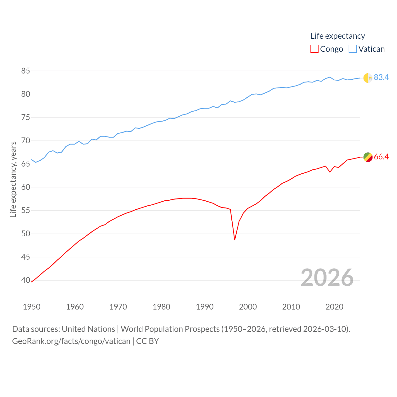 Congo vs. Vatican life expectancy calculator