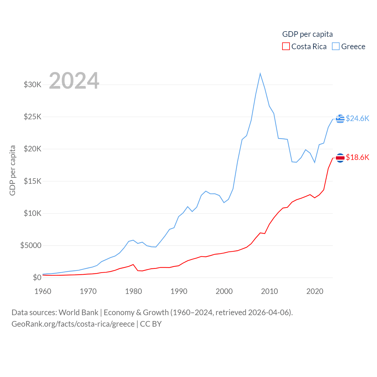 Costa Rica and Greece economies compared