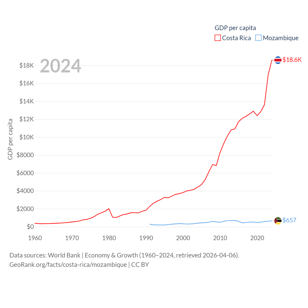 Costa Rica and Mozambique economies compared