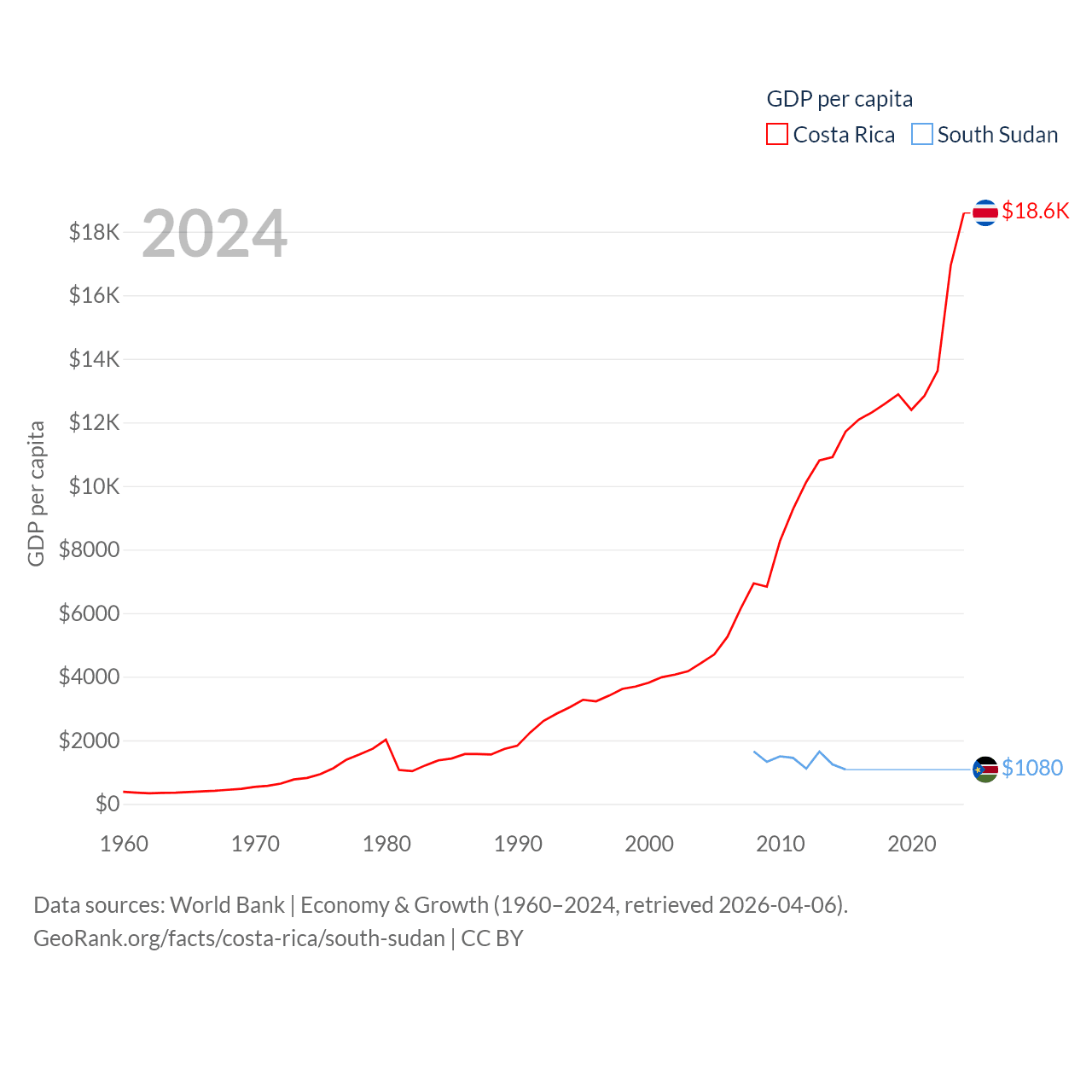 Costa Rica and South Sudan economies compared