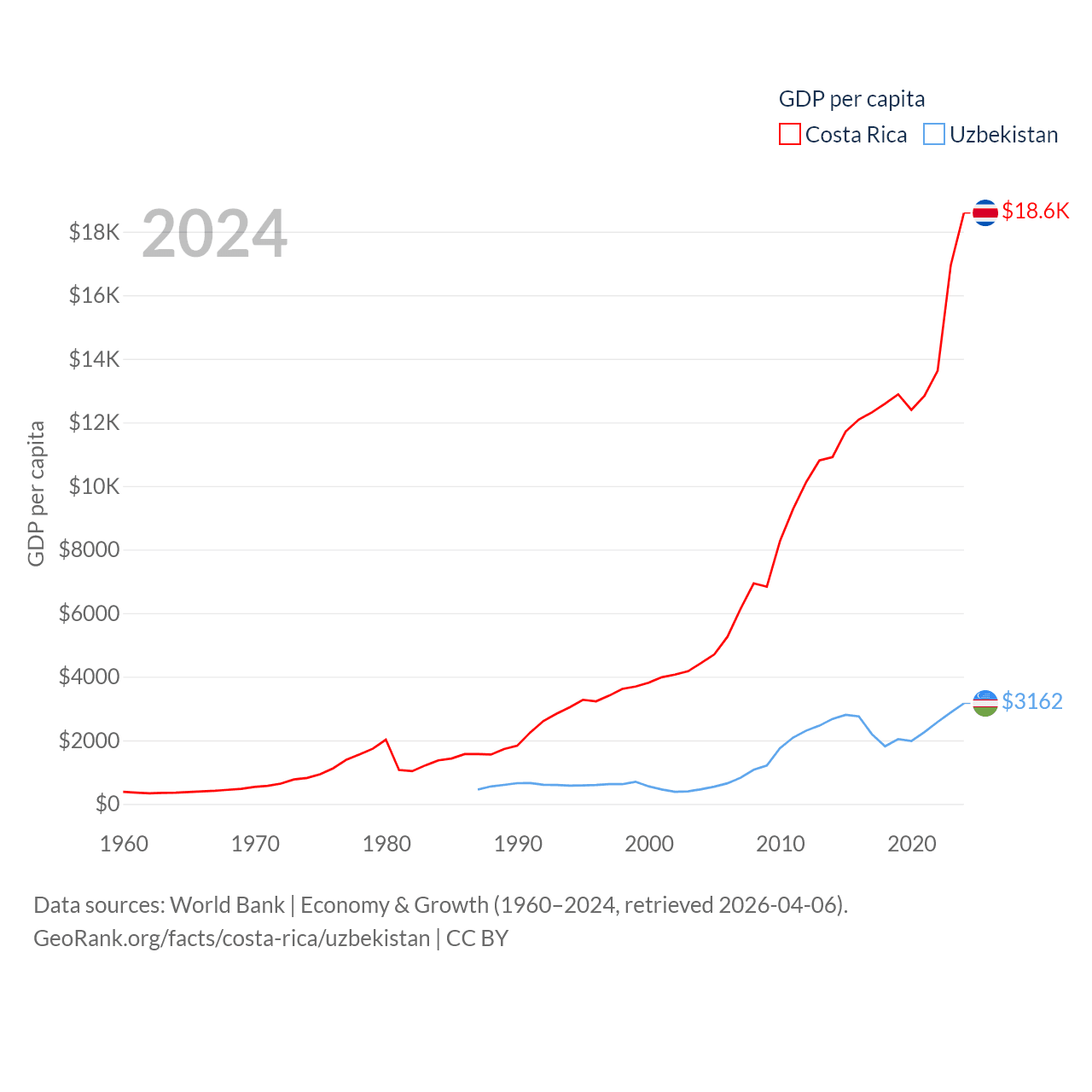 Costa Rica and Uzbekistan economies compared